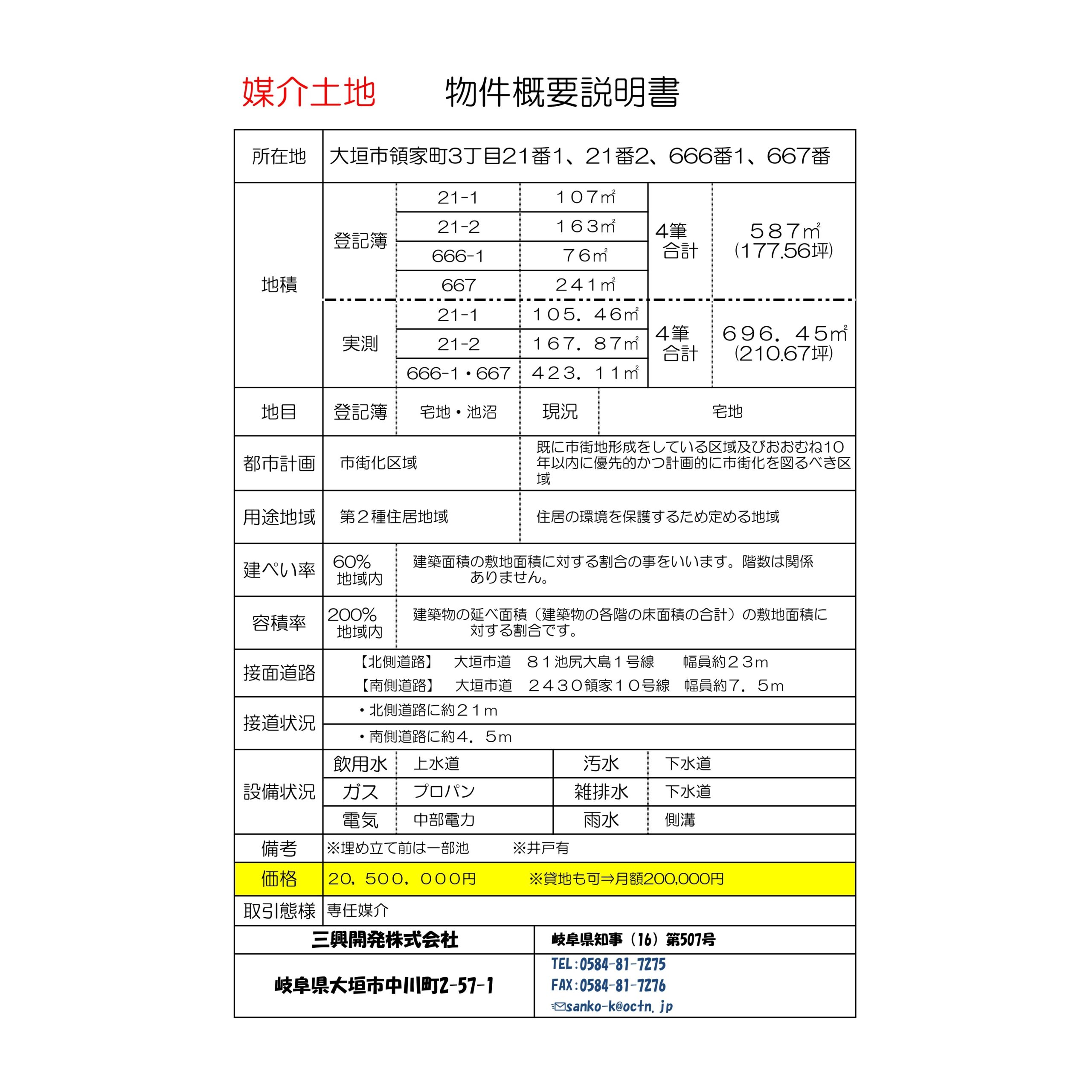 大垣市領家町3丁目21番1、21番1、666番1、667番