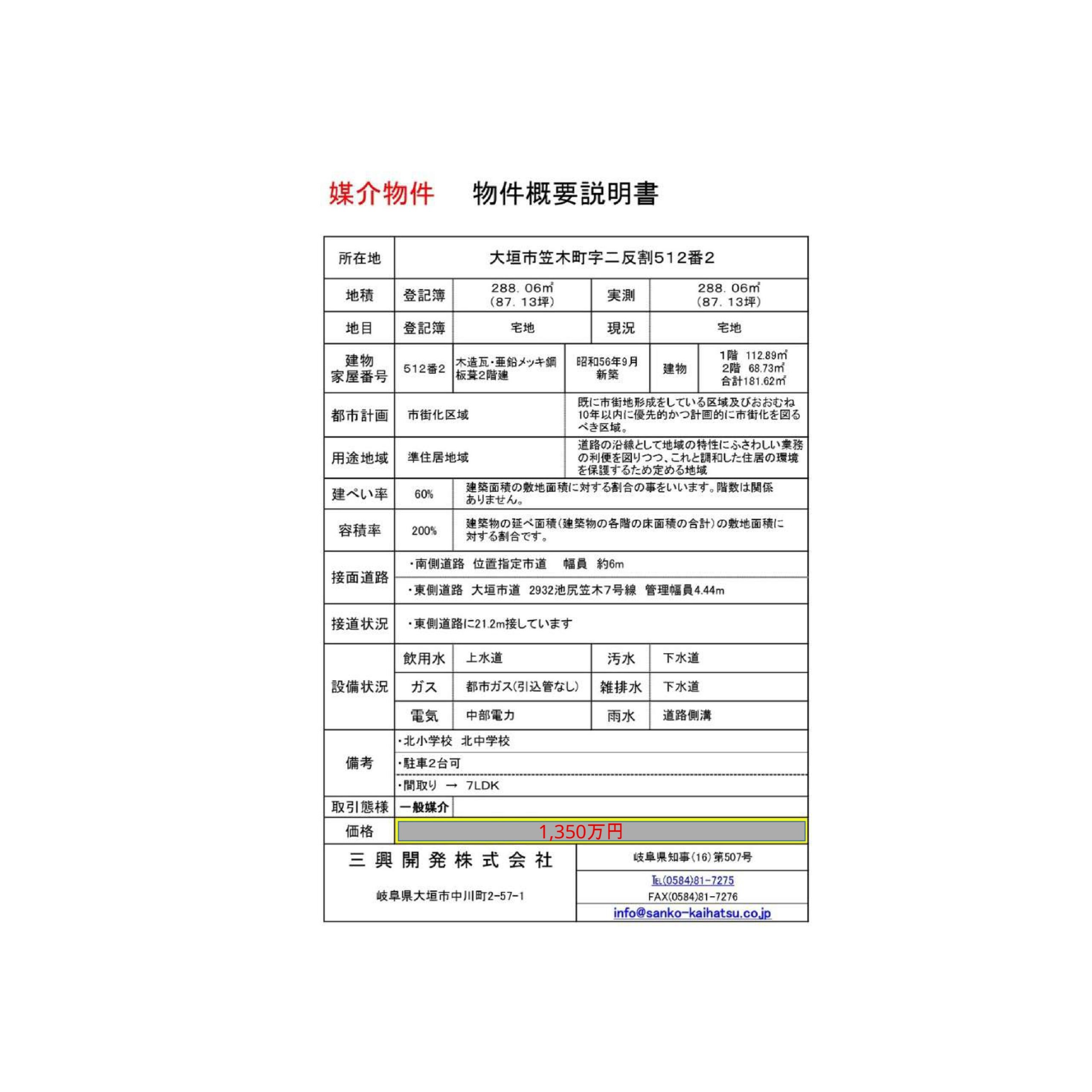 大垣市笠木町5丁目 (2階建 7LDK) ※値下げ