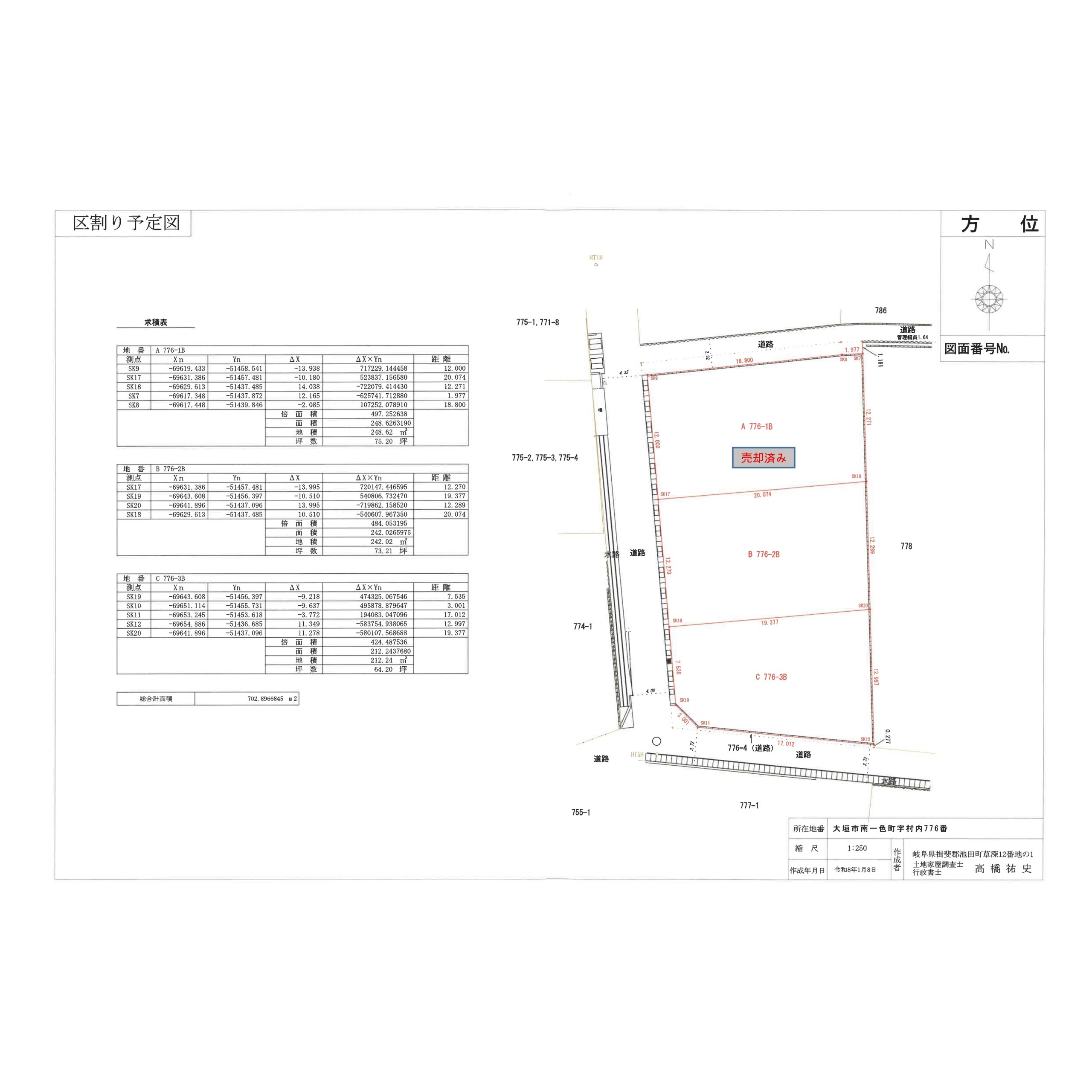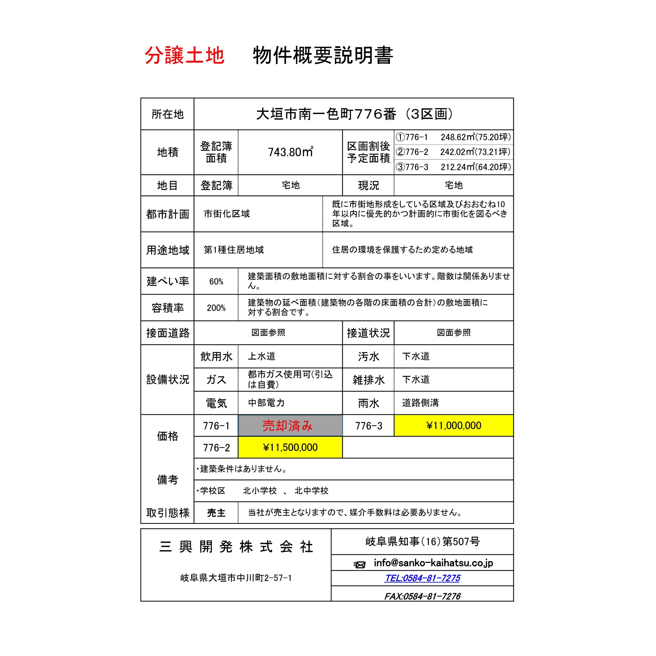 ①776-1 248.62㎡(75.20坪)※売却済み ②776-2 242.02㎡(73.21坪) ③776-3 212.24㎡(64.20坪)