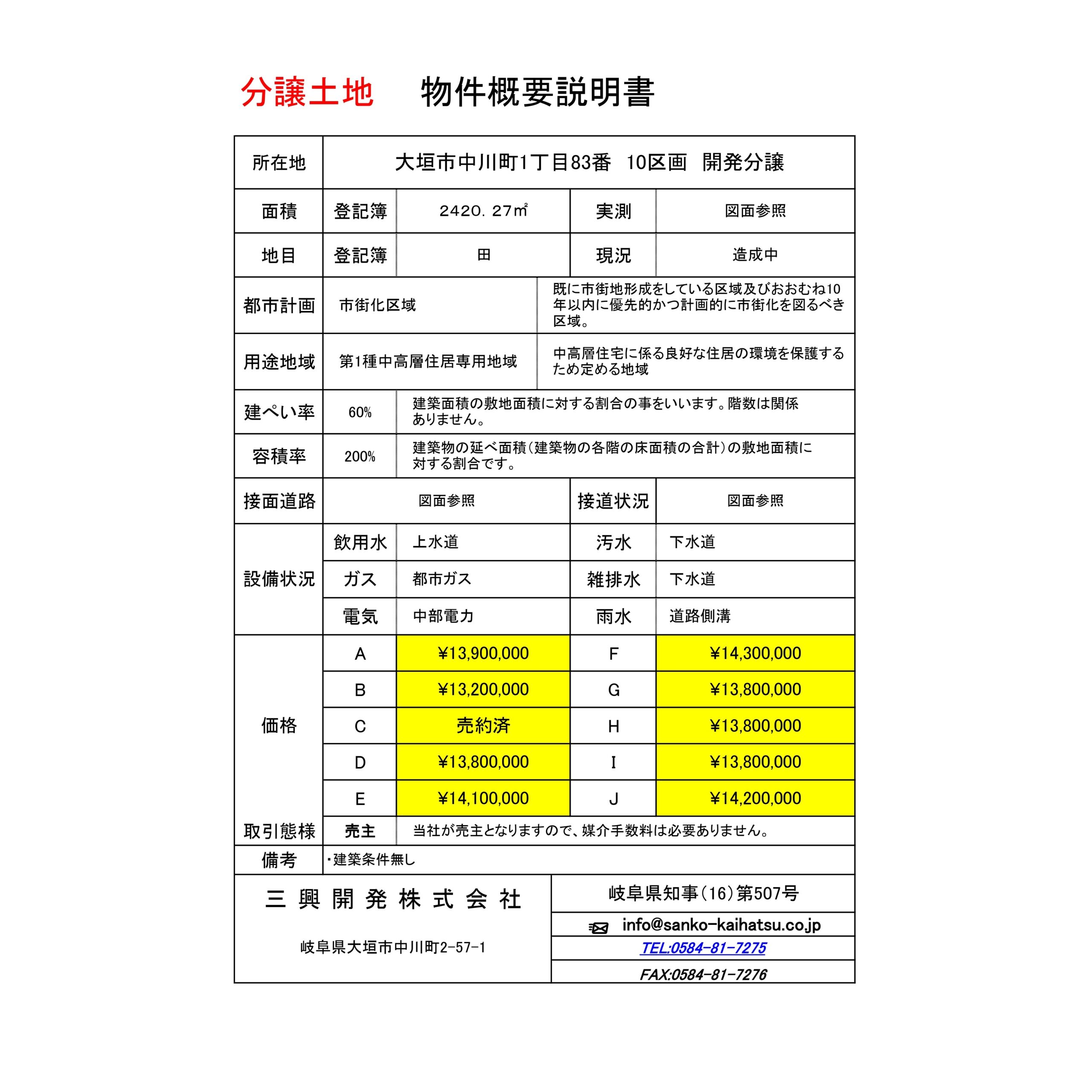 (New) 大垣市中川町1丁目(10区画)