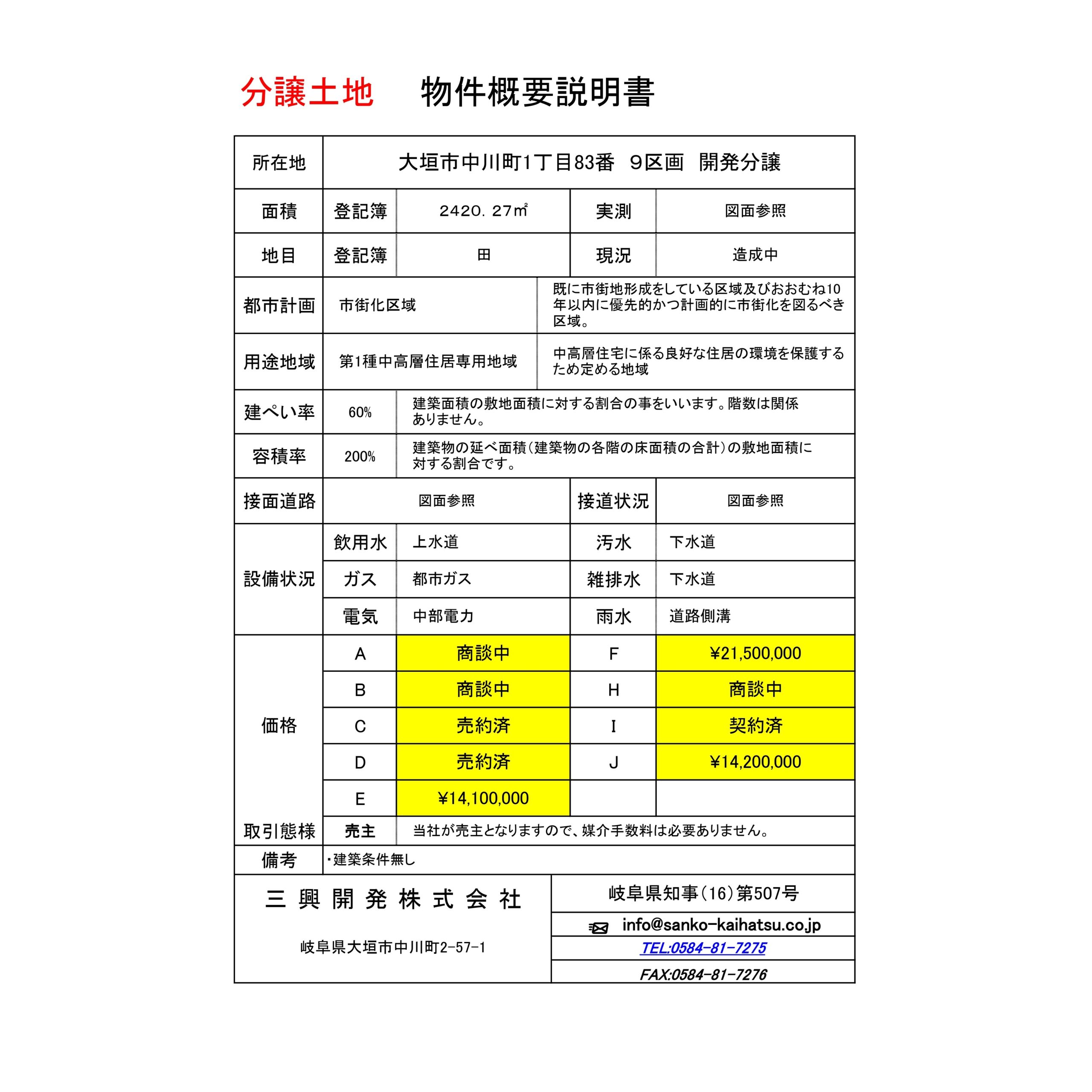 大垣市中川町1丁目(残り3区画)※区画、価格変更